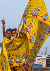 River gypsy boys living on a boat, Barisal Division, Barisal, Bangladesh