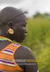 Surma woman with scarifications and enlarged ears, Omo valley, Kibish, Ethiopia