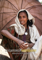 Ethiopian woman under an umbrella, Amhara Region, Lalibela, Ethiopia