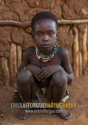 Litte Hamer Girl Tribe In Traditional Outfit, Turmi, Omo Valley, Ethiopia