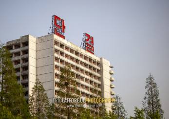 Propaganda billboard on a building, DGC, Pyongyang, North Korea