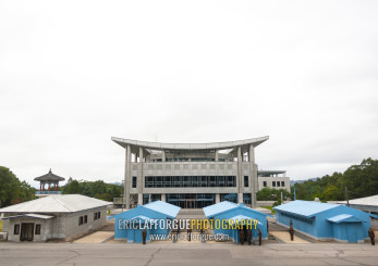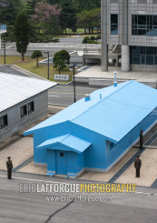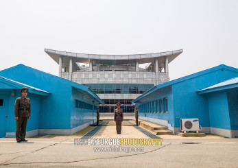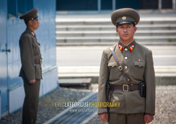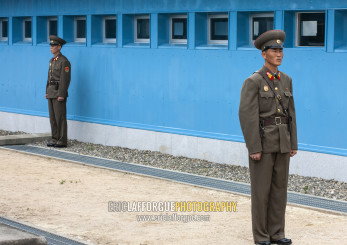 North Korean soldiers on the demarcation line in the DMZ, North Hwanghae, Panmunjom, North Korea