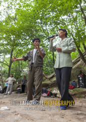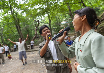 North Korean electricity company workers singing in a park, North Hwanghae, Kaesong, North Korea
