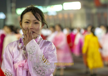 Women dancing to celebrate april 15 the birth anniversary of Kim Il-sung, DGC, Pyongyang, North Korea