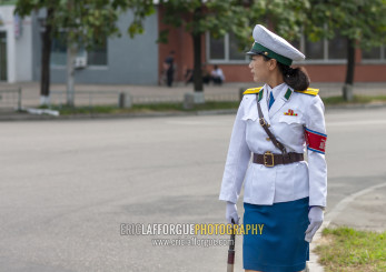 North Korean female traffic security officer in the street, DGC, Pyongyang, North Korea