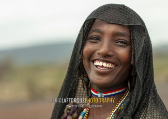 Portrait of a smiling Karrayyu young woman, Oromia, Metahara, Ethiopia