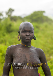 Surma woman with scarifications and enlarged ears, Omo valley, Kibish, Ethiopia