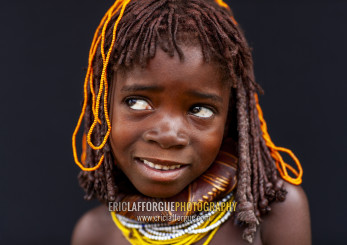 Shy Mwila girl with beaded ornaments, Huila Province, Chibia, Angola
