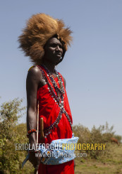 Maasai warrior with a lion hat fur on the head, Nakuru county, Nakuru, Kenya