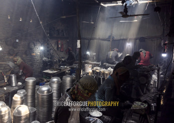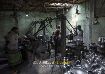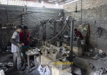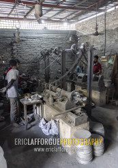 Bangladeshi workers making metal bowls, Dhaka Division, Dhaka, Bangladesh