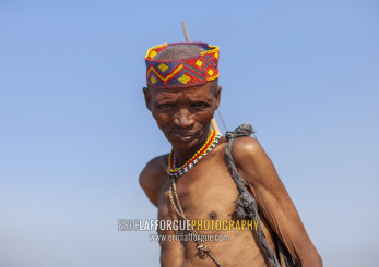 Old san tribe man, Otjozondjupa, Tsumkwe, Namibia
