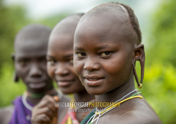 Suri tribe women with enlarged earlobe, Kibish, Ethiopia
