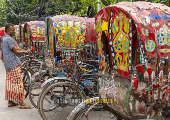 Parked decorated rickshaws, Dhaka Division, Dhaka, Bangladesh