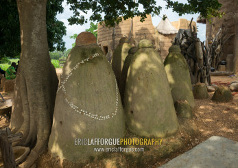 Benin, West Africa, Boukoumbé, voodoo altars representing the spirits of the dead people from the traditional tata somba house