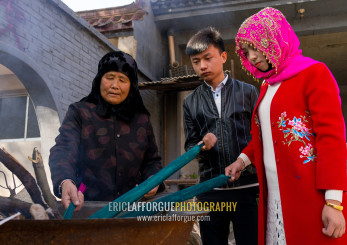 Hui muslim people burning incense stick in Yu Baba Gongbei shrine, Gansu province, Linxia, China
