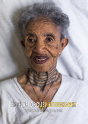 Ethiopian veteran woman from the italo-ethiopian war with tattoes in the neck, Addis Ababa Region, Addis Ababa, Ethiopia