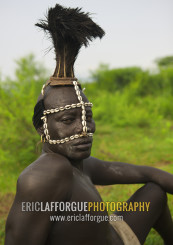 Bodi Cauris Mask And Ostrich Plume Headgear Man Portrait Kael New Year Ceremony Omo Valley Ethiopia