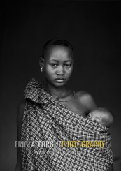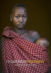 Portrait Of A Bodi Tribe Mother Carrying Her Baby, Hana Mursi, Omo Valley, Ethiopia