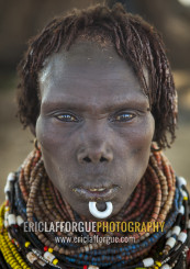 Portrait Of A Nyangatom Tribe Woman With Chin Jewel, Omo Valley, Kangate, Ethiopia