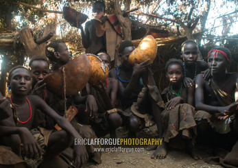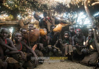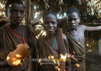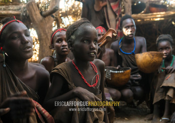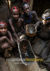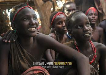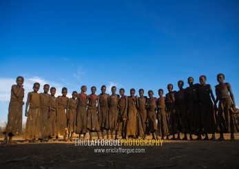Circumcised boys from the dassanech tribe staying together until they are healed, Omo valley, Omorate, Ethiopia