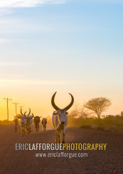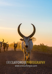 Herd of cows on a dusty track in the sunset, Afar region, Afambo, Ethiopia