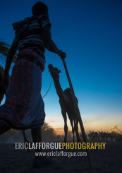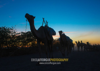 Camel caravan in danakil desert at sunset, Afar region, Afambo, Ethiopia