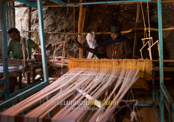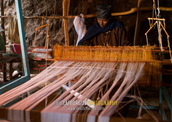 Orthodox monk weaver working, Amhara region, Lalibela, Ethiopia