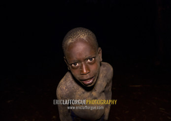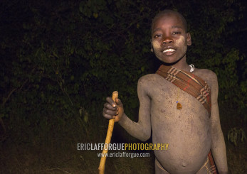 Bodi Tribe Boy During Night Ceremony Of The Kael, Hana Mursi, Omo Valley, Ethiopia