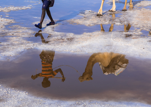 Afar tribe man camel caravans carrying salt blocks in the danakil depression, Afar region, Dallol, Ethiopia