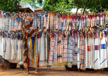 Senufo textiles and clothing at street market, Savanes district, Waraniene, Ivory Coast