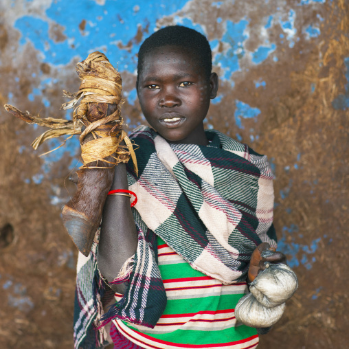 Girl from menit tribe posing, Jemu, Omo valley, Ethiopia