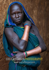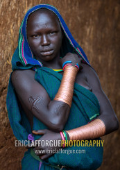 Portrait of a suri tribe woman with impressive bracelets, Omo valley, Kibish, Ethiopia