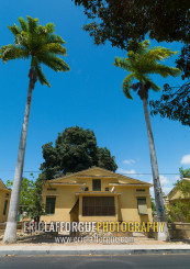 Old portuguese colonial house with palm trees, Namibe Province, Namibe, Angola