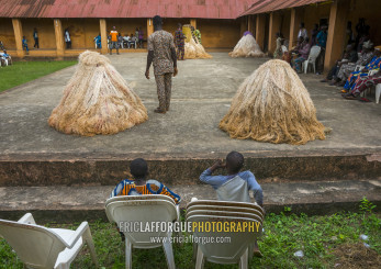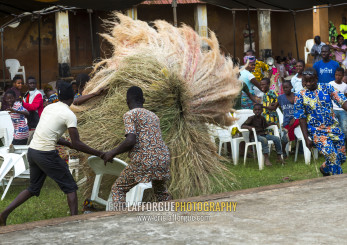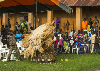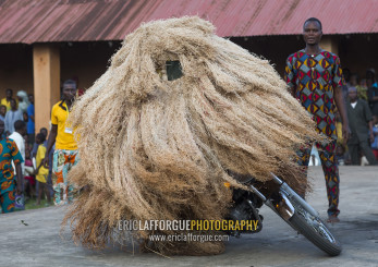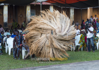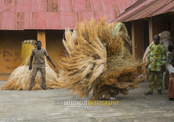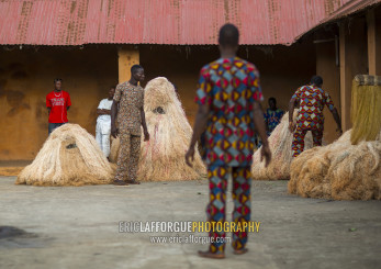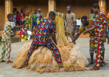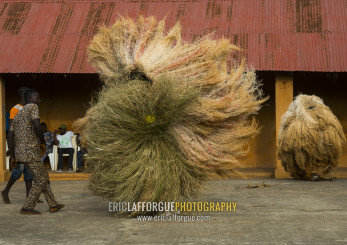 Benin, West Africa, Porto-Novo, zangbeto guardian of the night spirit dance in the royal palace