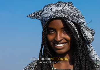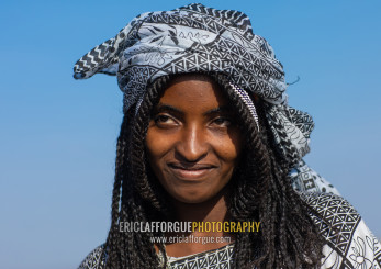 Portrait of a smiling afar woman, Afar region, Mile, Ethiopia