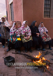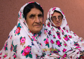 Portrait Of Iranian Women Wearing Traditional Floreal Chadors In Zoroastrian Village, Isfahan Province, Abyaneh, Iran
