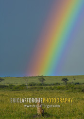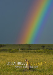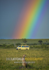 Cheetah (acinonyx jubatus) in front of a rainbow, Rift valley province, Maasai mara, Kenya
