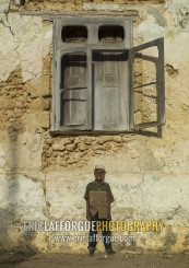 Kid Standing In Front Of An Old Window, Ibo Island, Cabo Delgado Province, Mozambique