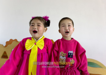 North Korean children in an orphanage singing a patriotic song, South Pyongan Province, Nampo, North Korea