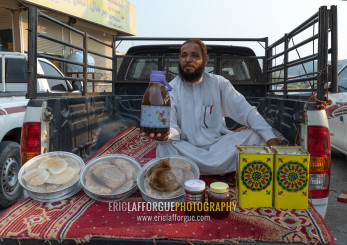 Saudi man selling honey and honeycombs on a market, Asir province, Al Habeel, Saudi Arabia