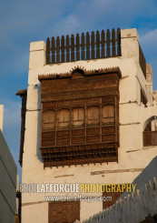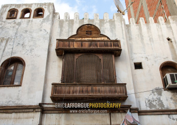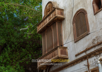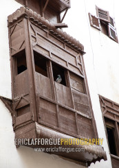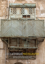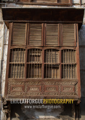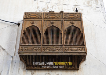 Wooden mashrabiya of an old house in al-Balad quarter, Mecca province, Jeddah, Saudi Arabia