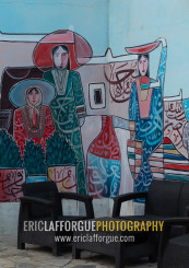 Mural painting in Muftaha village art gallery, Asir province, Abha, Saudi Arabia