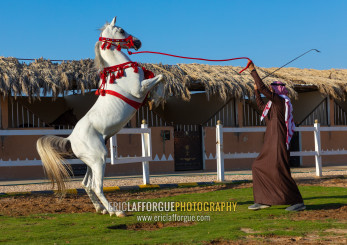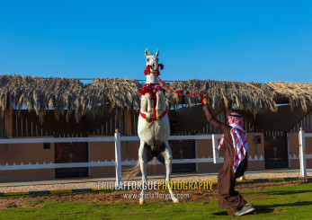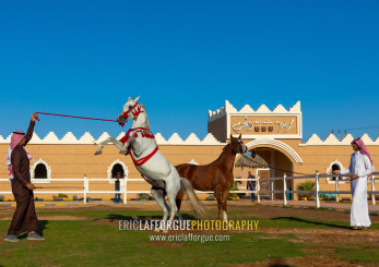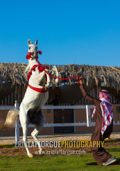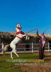 Arabian horse rearing up in alhazm stud, Najran Province, Khubash, Saudi Arabia
