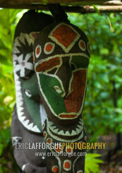Painted slit gong drums in the jungle, Ambrym island, Olal, Vanuatu