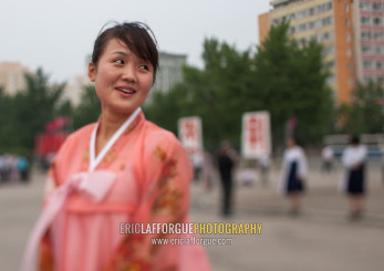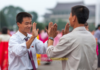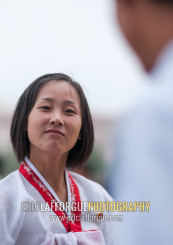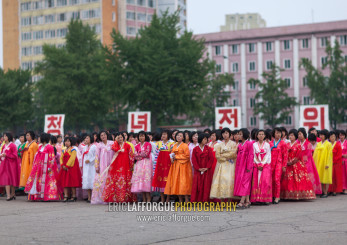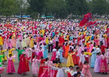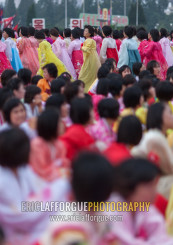 North Korean students during a mass dance performance on september 9 day of the foundation of the republic, Pyongan Province, Pyongyang, North Korea