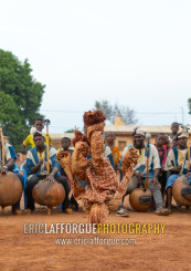 Boloye dance of the panther man performed by a child in the Senufo community, Savanes district, Waraniene, Ivory Coast