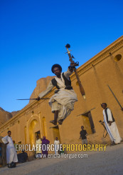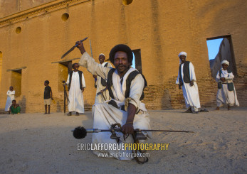 Sudan, Kassala State, Kassala, beja tribe men dancing in front of the khatmiyah mosque at the base of the taka mountains