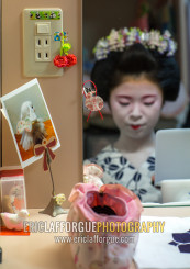 16 Years old maiko called chikasaya during a make up session, Kansai region, Kyoto, Japan