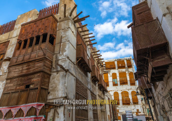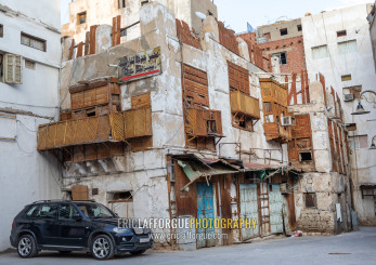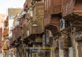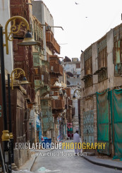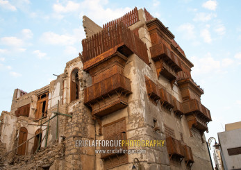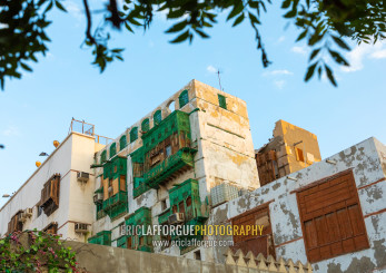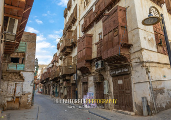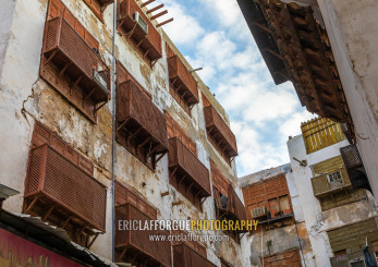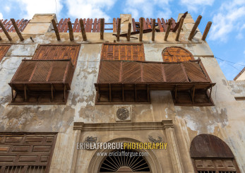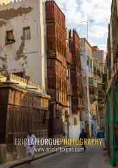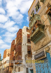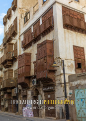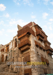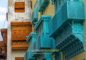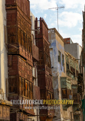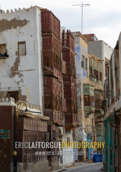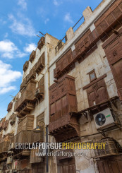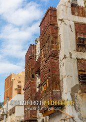 Old houses with wooden mashrabiyas in al-Balad quarter, Mecca province, Jeddah, Saudi Arabia