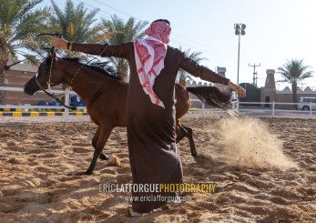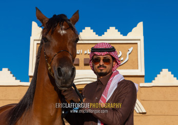saudi man with his Arabian horse in Alhazm stud, Najran Province, Khubash, Saudi Arabia